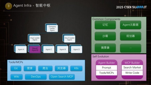 · 公共能力组件是 Agent Infra 智能中枢体系中支撑 Agent 高效运行的核心基础模块。它通过提供统一的 Memory、Agent 元数据管理、沙盒环境、规划器和摘要器等公共能力,使 Agent 能够高效地管理自身知识、跟踪任务状态、进行安全隔离的实验等,以及在复杂任务中实现智能规划与决策。