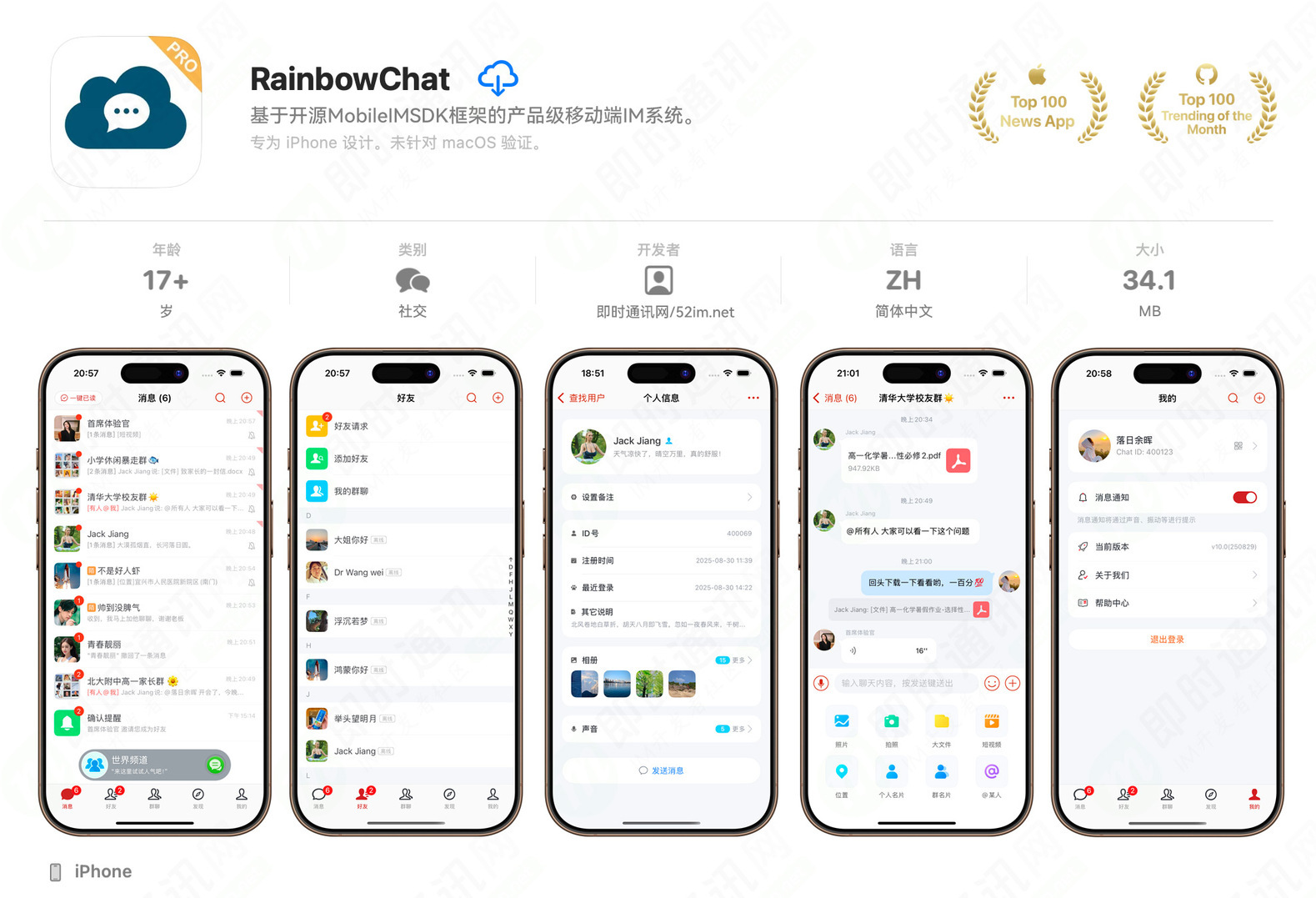 基于开源 IM 即时通讯框架 MobileIMSDK:RainbowChat-iOS 端 v10.0 版已发布