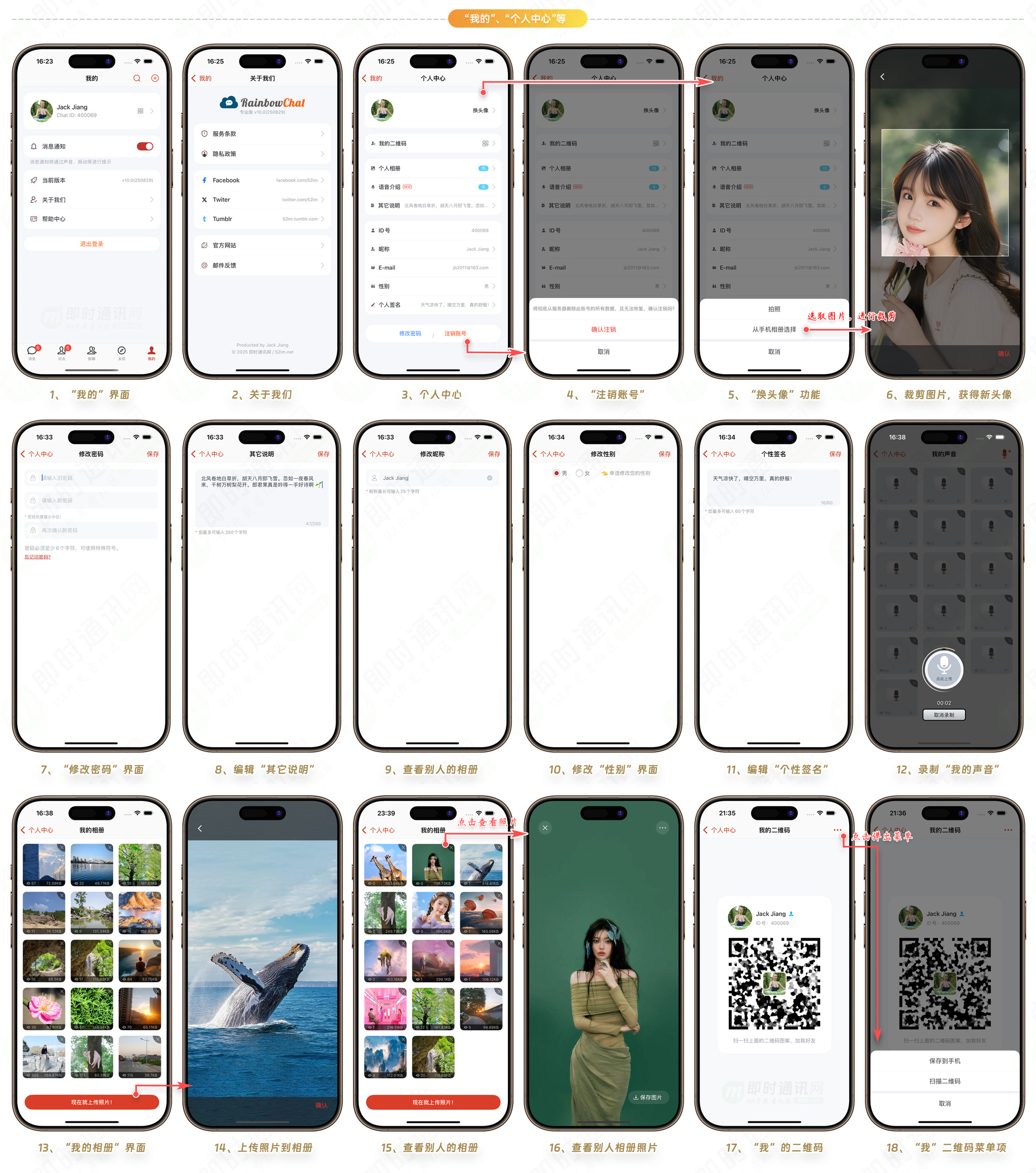 RainbowChat 是一套基于开源 IM 即时通讯聊天框架 MobileIMSDK 的产品级移动端 IM 系统。RainbowChat 源于真实运营的产品,解决了大量的屏幕适配、细节优化、机器兼容问题。RainbowChat 可能是市面上提供 im 即时通讯聊天源码的,唯一一款同时支持 TCP、UDP 两种通信协议的 IM 产品。与姊妹产品 RainbowTalk 和 RainbowChat-Web 技术同源,历经考验。