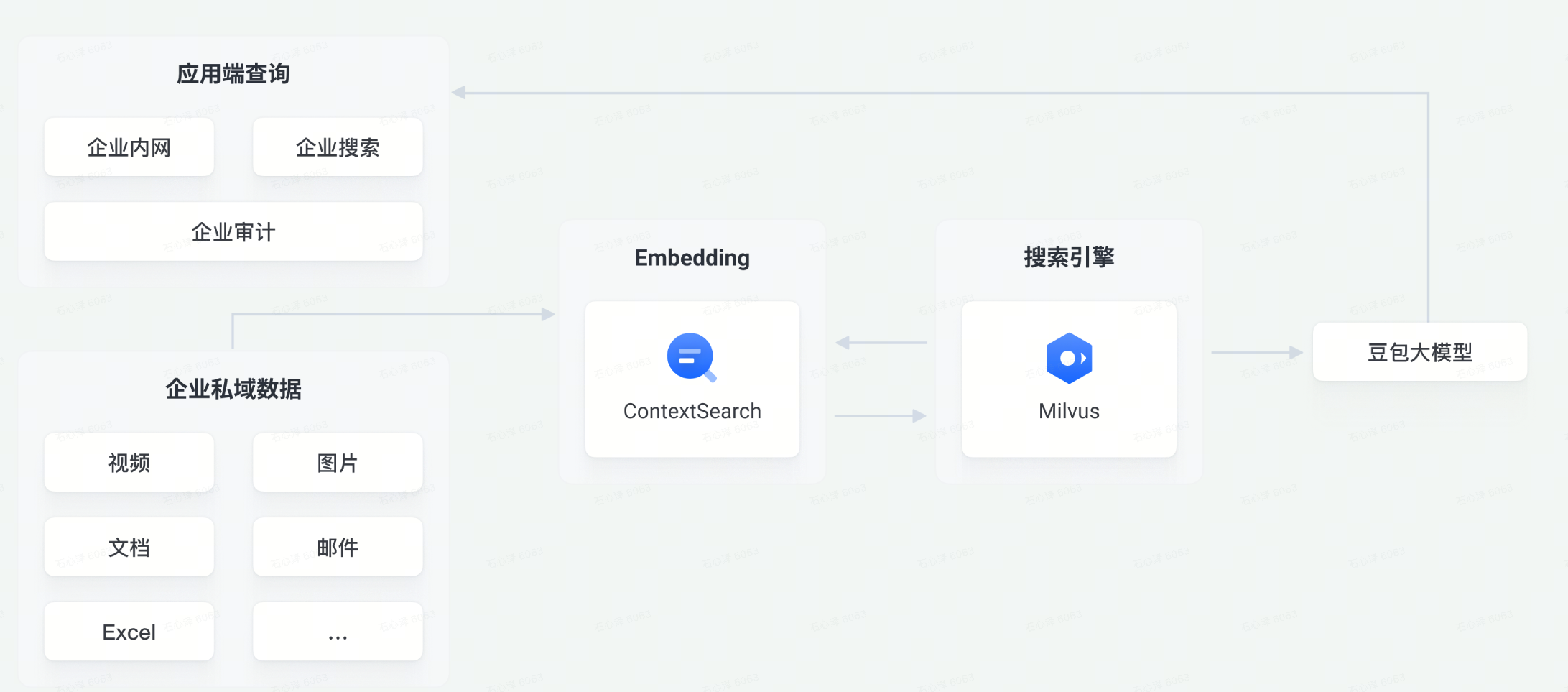 火山引擎 Milvus 与 AI 推理场景结合,通过 Embedding 模型能力处理不同类型的数据,高效索引与精准检索双在线,快速精准地跨媒体类型进行信息检索。