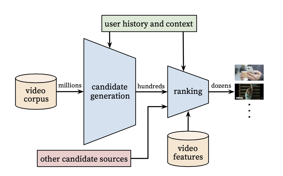 [1] Covington, Paul, Jay Adams, and Emre Sargin. "Deep neural networks for youtube recommendations." Proceedings of the 10th ACM conference on recommender systems. 2016.