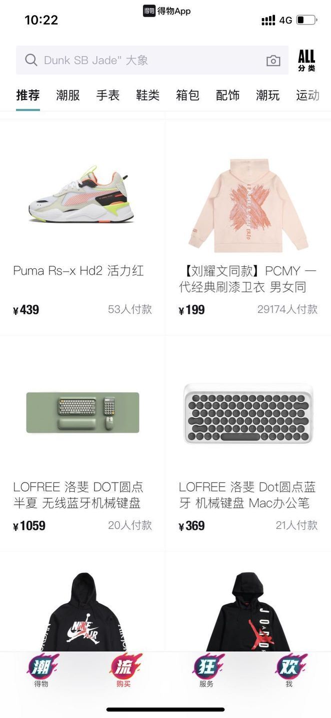 图 1. 得物 APP 首页推荐瀑布流
