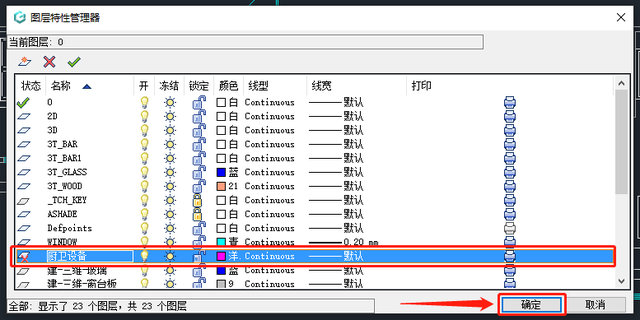 此时“厨卫设备”图层状态中会出现红色【X】,点击【确定】即可将其删除。
