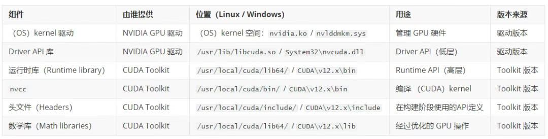 NVIDIA GPU 驱动包同时包含(OS)kernel 组件((OS)kernel 模块/驱动)和 libcuda 用户态库。