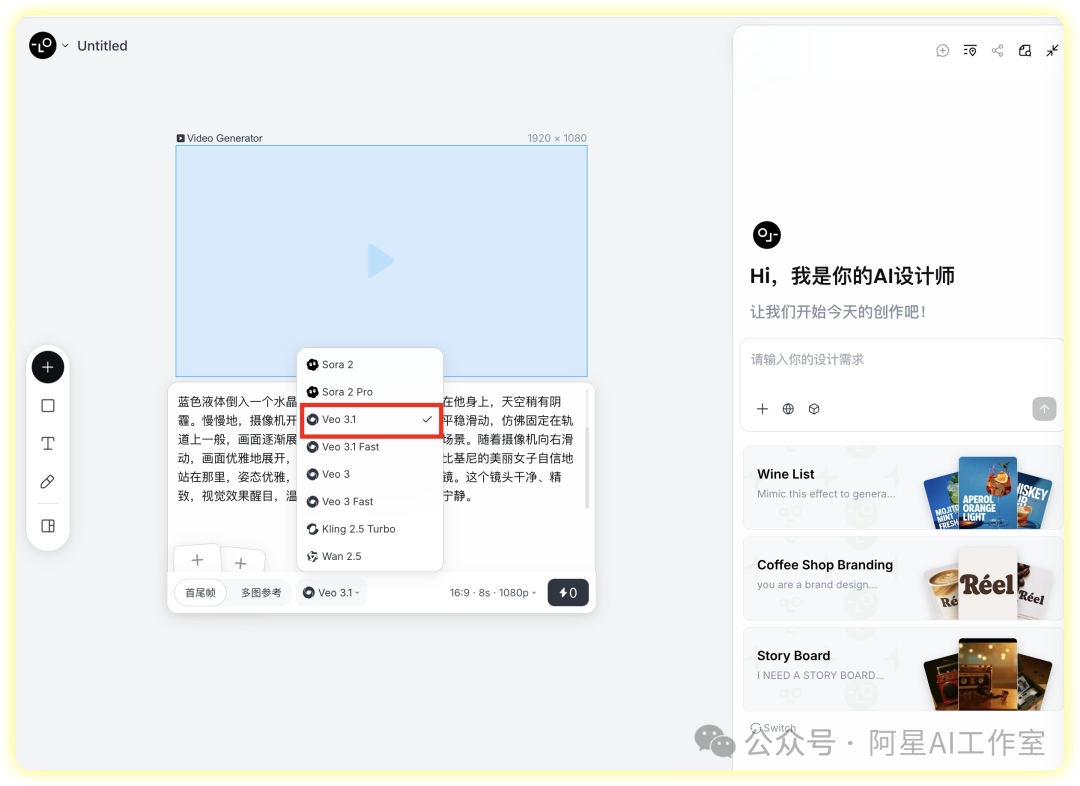 首先你需要新建项目👉🏻点影片生成器👉🏻选择 veo3.1