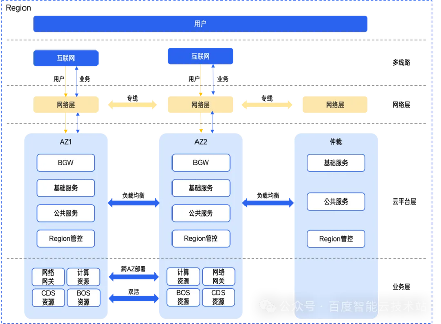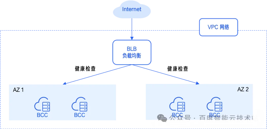 在流量切换方面,业务可依托百度智能云提供的跨 AZ 负载均衡与健康探测机制,在检测到异常时自动完成 AZ 级别的流量切换,确保业务不中断。