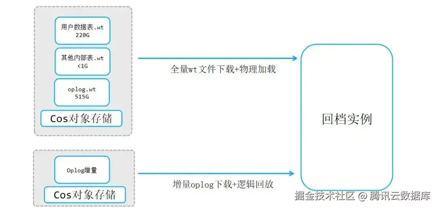 同理,当对整个实例进行整实例回档的时候,我们需要从 cos 下载前面备份的所有 wt 数据文件,总文件越大,下载也会越耗时。
