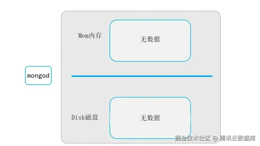 如果这时候机器故障或者 mongod 故障节点挂掉了,重启节点后,由于数据没有持久化到磁盘,因此重启后数据就会丢失,如下图。