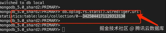 说明:为了便于理解,这里直接用表名 .wt 来表示该表对应磁盘上的 wt 文件,实际上表对应的 wt 文件名在 mongo server 层做了一次转换。实际对应关系可以通过 db. 表名 .stats().wi redTiger.uri 获取,以 oplog.wt 为例,它对应磁盘的文件路径如下:
