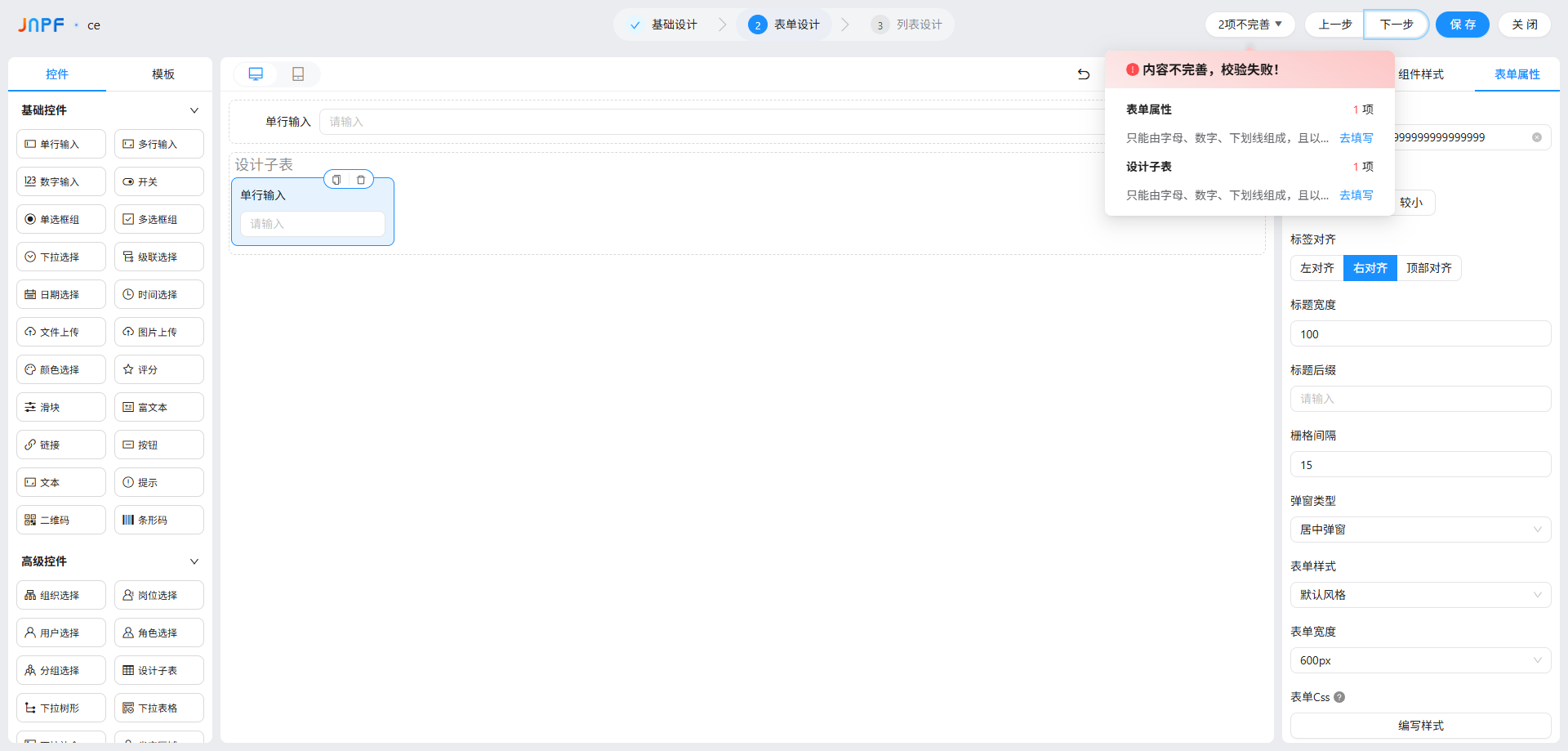 基础设置完成后,进入 “表单设计” 和 “列表设计” 页面,操作逻辑和之前讲的 “表单设计” 一致: