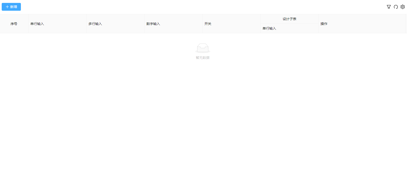 所有设计完成后,点击 “保存”,再点击 “发布”—— 未发布的表单只能在设计页修改,发布后才能在 “应用菜单” 中生成菜单,用户才能在应用前台访问。发布后若需修改表名,注意:主表名和子表名无法修改,只能删除表单重新创建,所以自定义表名时一定要提前确认好。