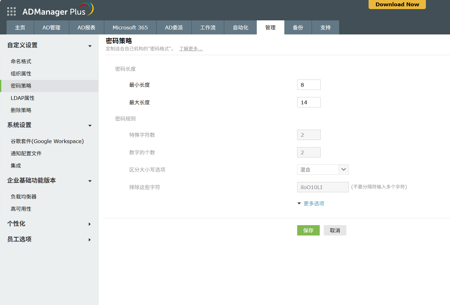 对于组织而言,为密码重置和新用户生成随机密码并非一项简单的操作,而是保障整个组织信息安全体系的关键任务。ADManager Plus 凭借其直观的基于 GUI(图形用户界面)的功能,让管理员无需具备复杂的编程知识,就能轻松完成随机密码的生成和管理工作。其生成的随机密码严格遵循域密码策略要求,既保证了密码的安全性,又避免了因人工设置密码可能出现的安全漏洞和人为失误。通过使用 ADManager Plus,组织能够有效提升用户帐户的安全防护水平,为组织的信息资产和业务运营提供坚实的安全保障,在日益复杂的网络安全环境中,牢牢掌握安全主动权。