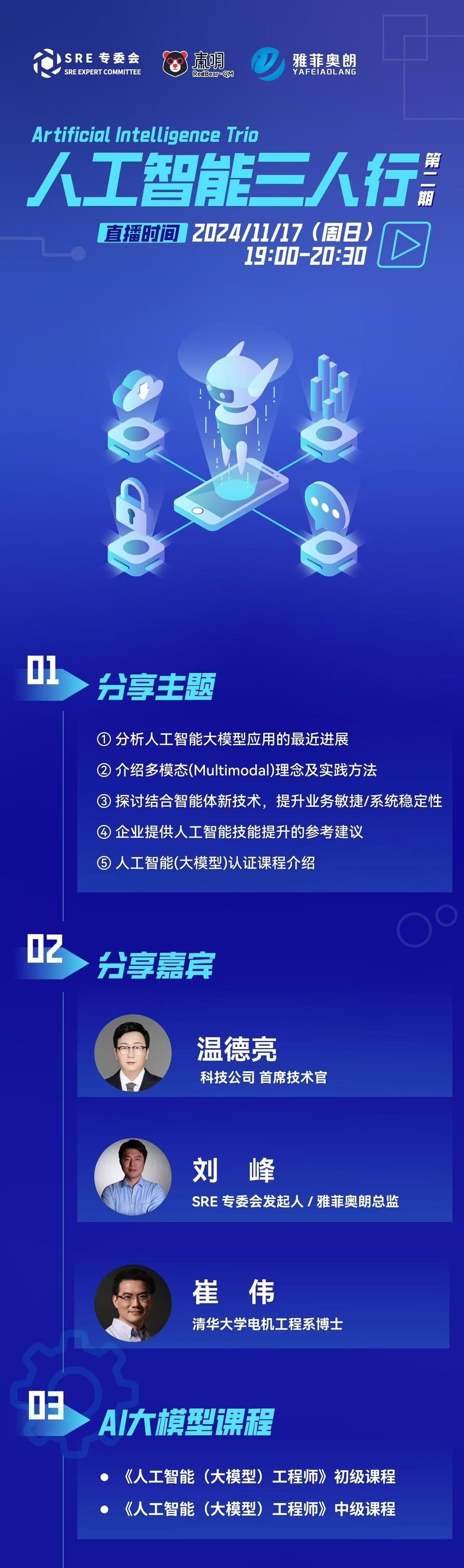 在数字化转型和智能化升级的浪潮中,人工智能技术,尤其是大模型和智能体技术,已经成为推动行业发展的核心力量。为了更深入地理解这些前沿技术并有效地将其应用于实践,SRE 专委会、雅菲奥朗与智用人工智能应用研究院联合举办了一场线上分享会。此次会议吸引了众多行业专家和学者的参与,共同探讨了人工智能大模型的最新进展、智能体技术的实践应用,以及如何通过智能体技术提升企业的业务敏捷性和系统稳定性。