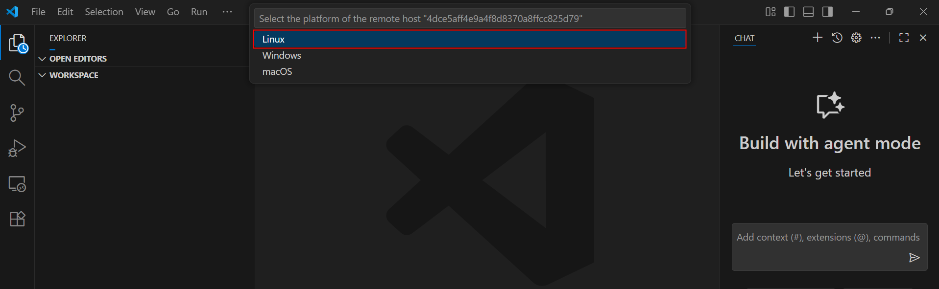 此时 VS Code 自动打开一个新的窗口,并提示选择连接的操作系统,此处选择 Linux。