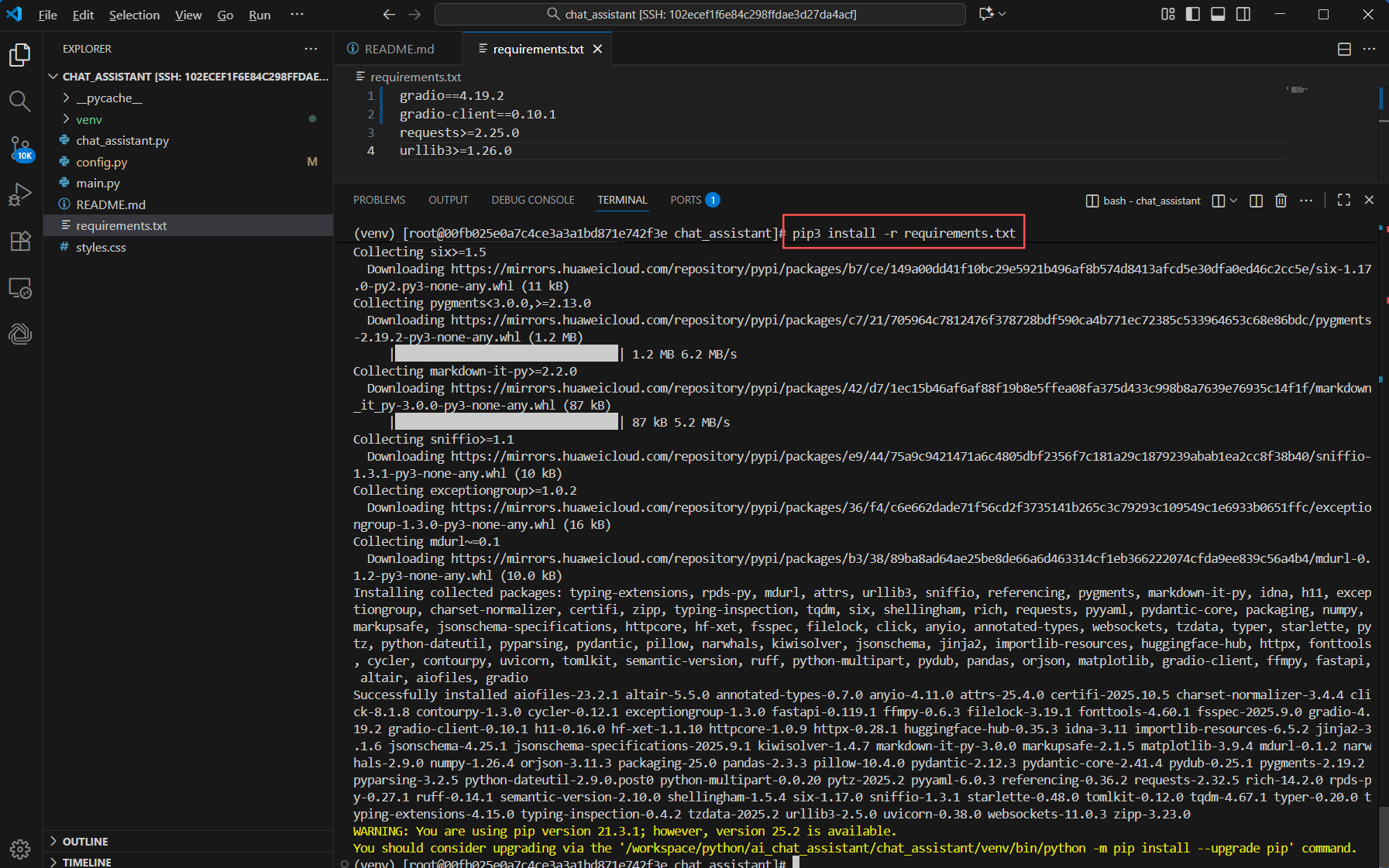 gradio: Web 界面框架requests: HTTP 请求库urllib3: URL 处理库