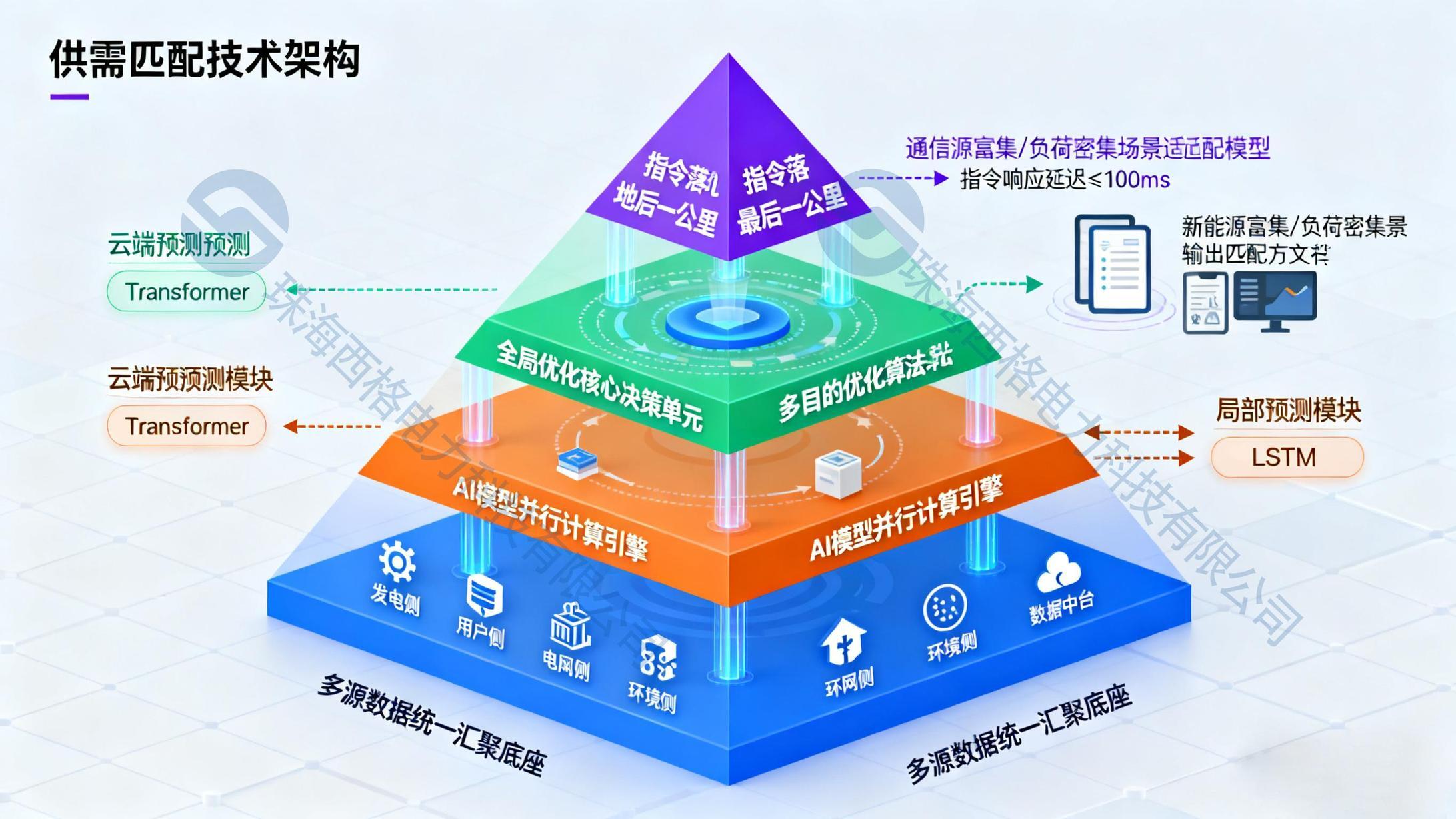 破解这一难题的关键,在于构建“AI 预测精准预判、供需模型智能匹配、动态调度实时响应”的技术体系,西格电力绿电直连系统解决方案(咨询服务:1.3.7-5.0.0.4-6.2.0.0。),该体系以 AI 预测为“眼睛”,提前捕捉绿电生产与消费的变化趋势;以供需匹配为“大脑”,优化资源配置方案;以动态调度为“手脚”,确保方案落地执行,最终实现绿电“生产多少、消费多少,需要多少、供应多少”的动态平衡。