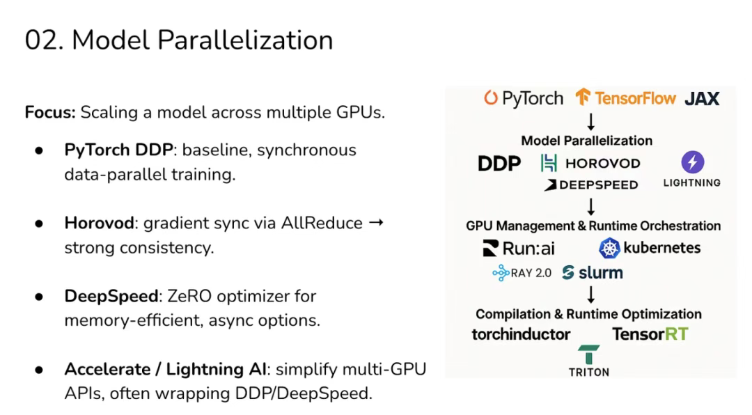 如果在并行化层(Parallelization)同步配置错误,就会导致运行时编排层(Runtime Orchestration)GPU 大量闲置。