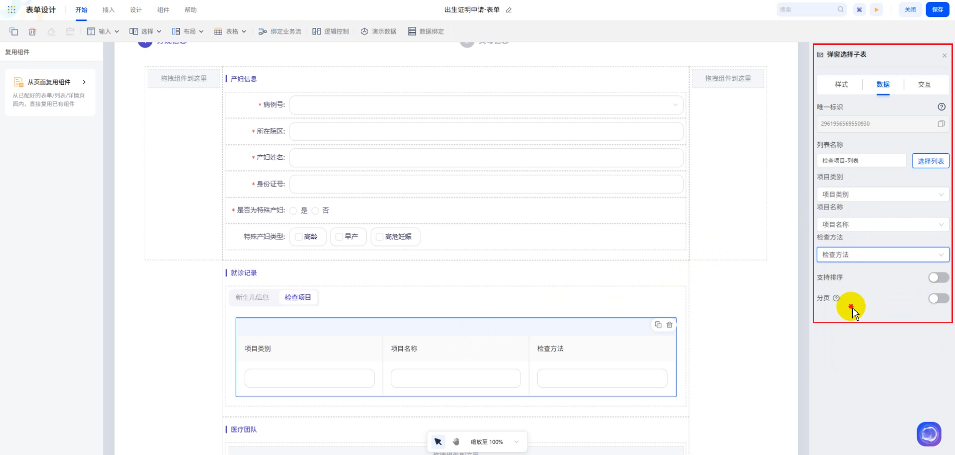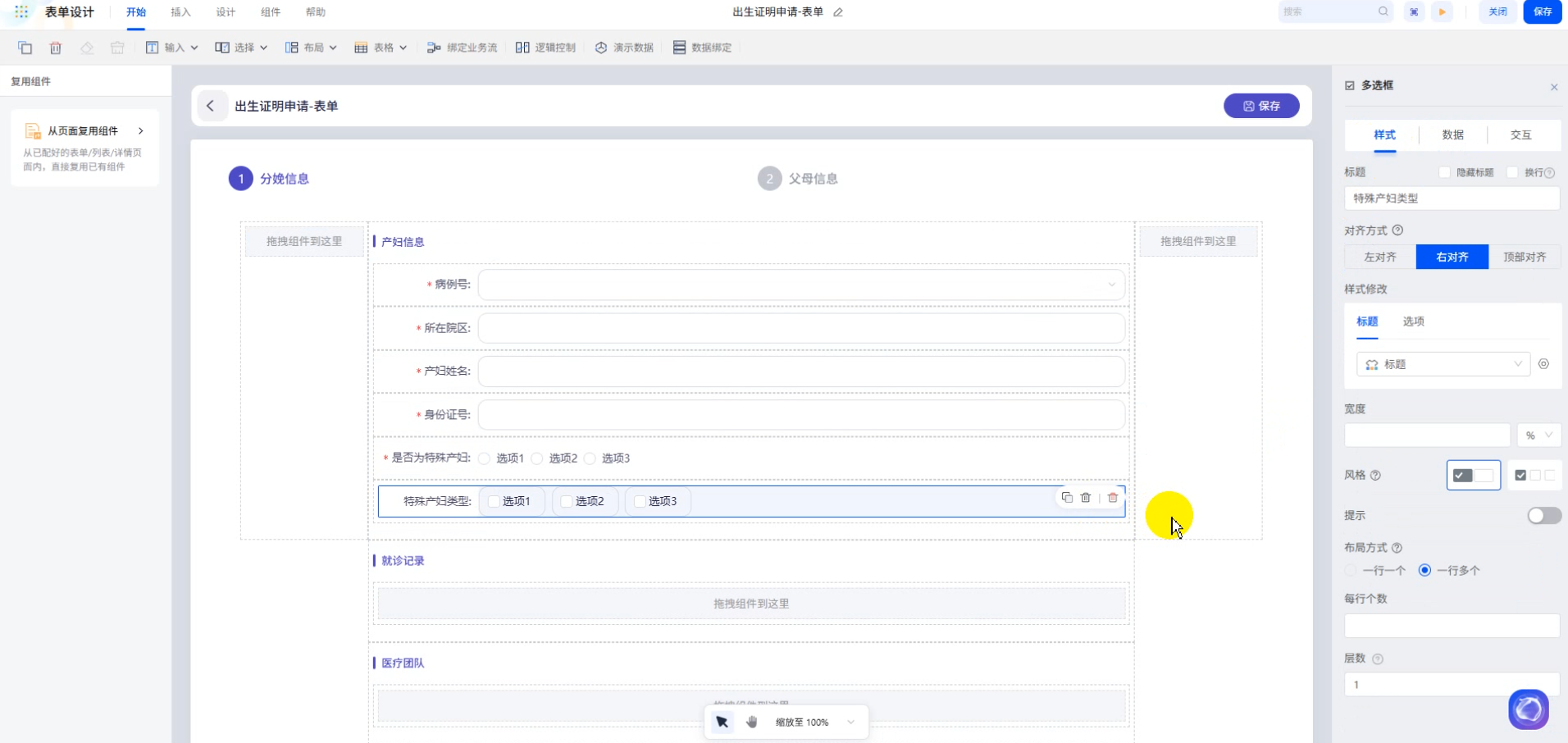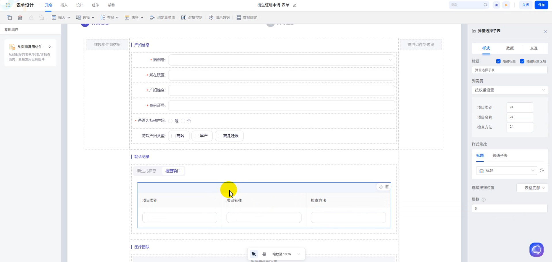 基于无代码技术快速开发【医院出生证明】复杂表单