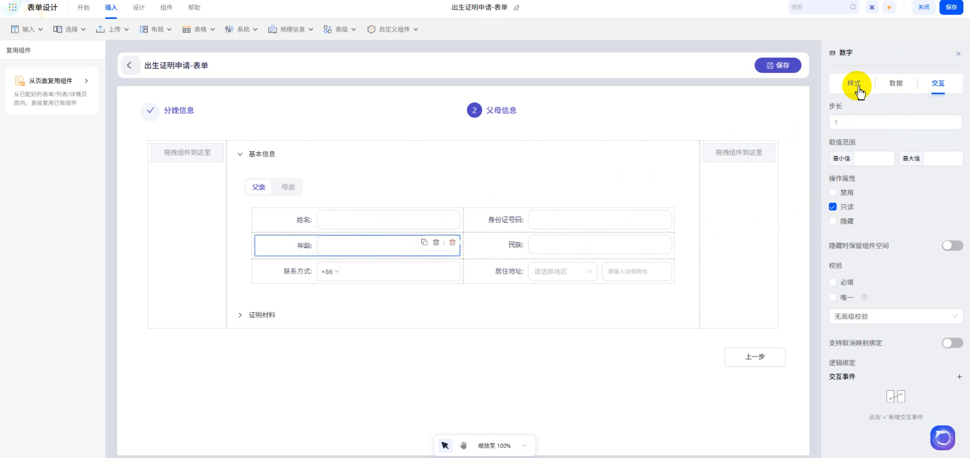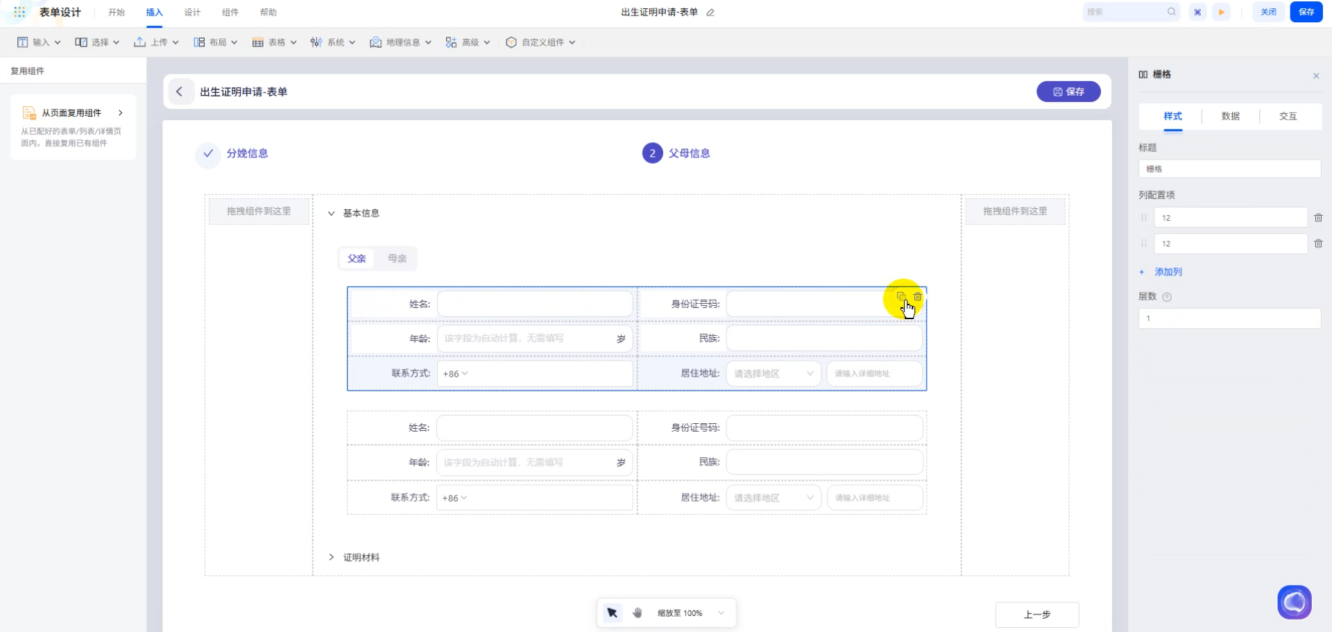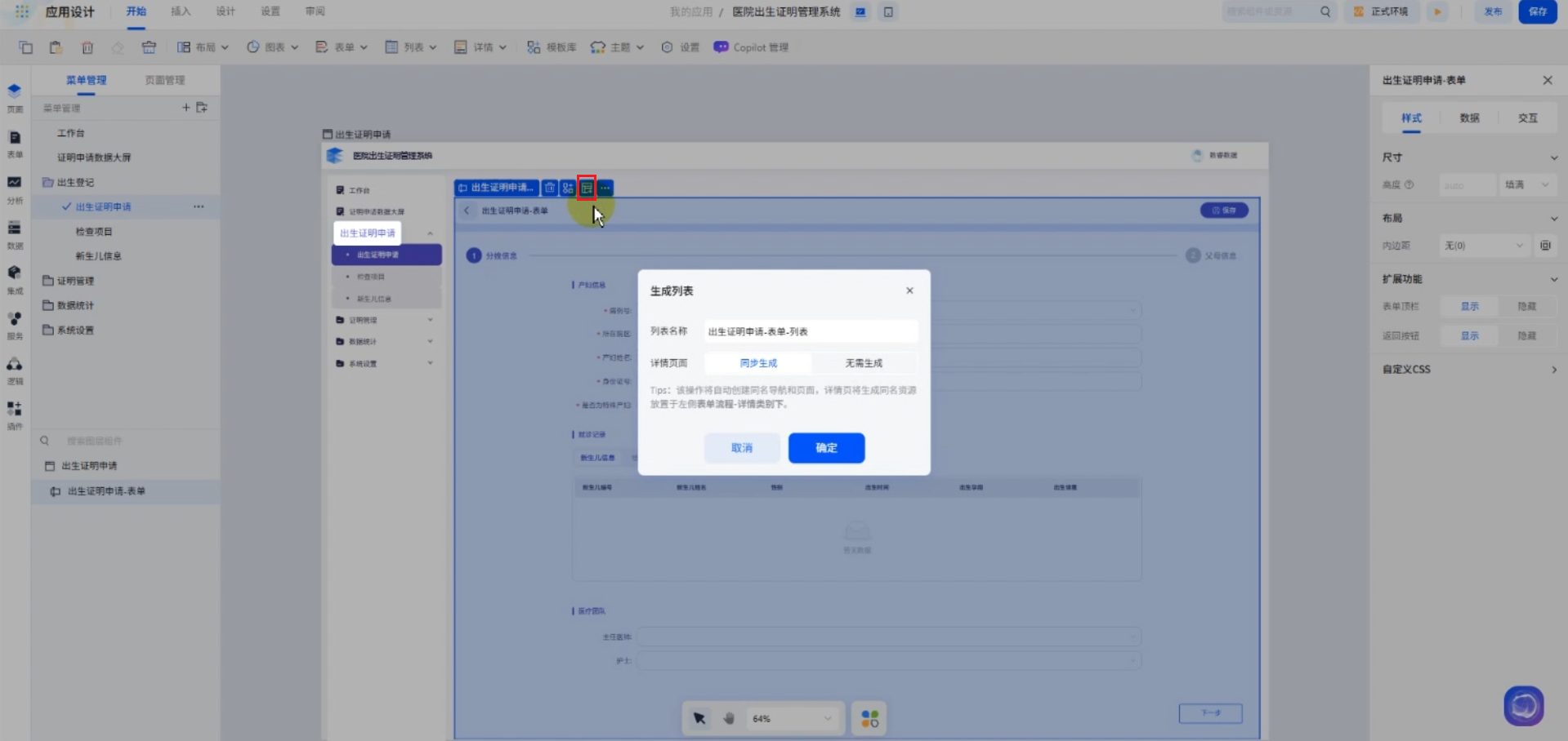 基于无代码技术快速开发【医院出生证明】复杂表单