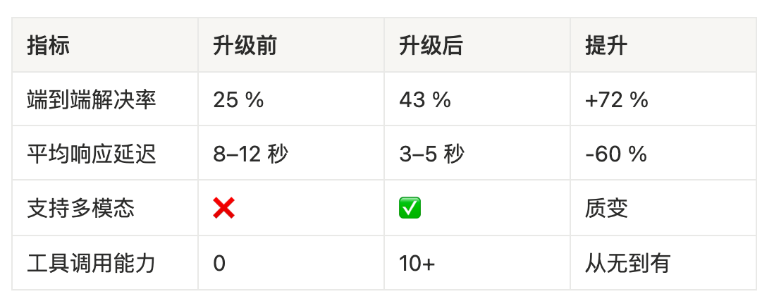 但如果我告诉你,有一家公司把 AI 客服的问题解决率从 25% 提升到了 43%,并 让它真正能像人类客服一样能查系统、看截图、主动追问、甚至还会主动帮你接入人工客服,你相信吗?