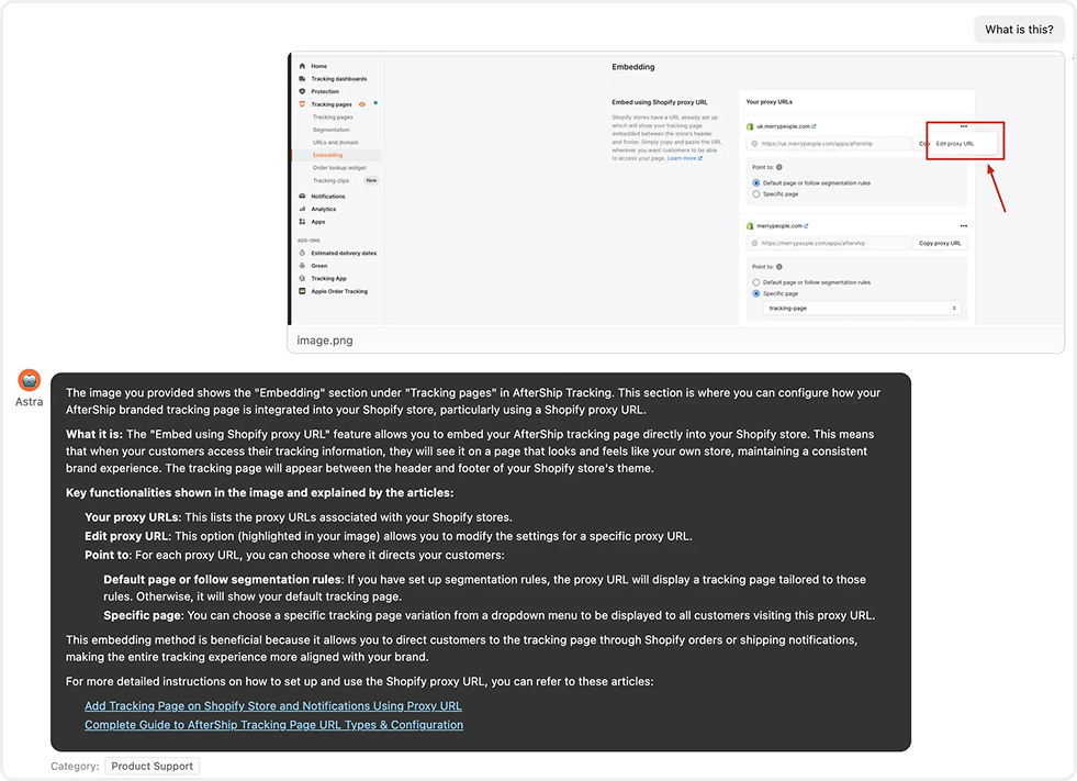 过去,当用户上传截图时,AI 只能机械回复「请描述您的问题」,体验极差。现在,AfterShip 的 Agent 已能直接识别图片内容。