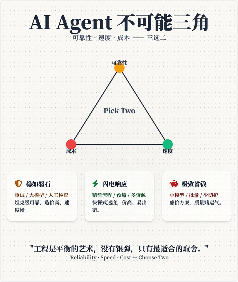 AfterShip 技术团队总结了 Agent 的「不可能三角」: