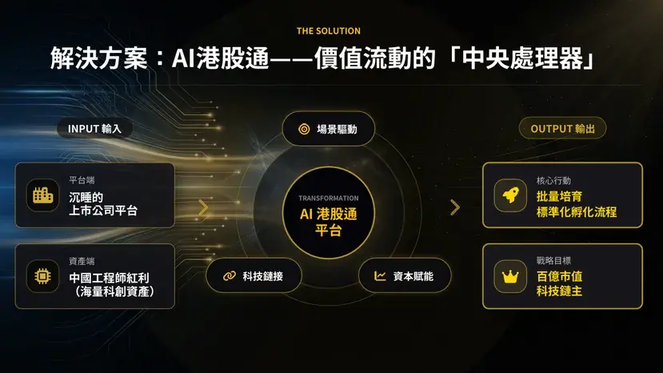 然而,当我们审视市场现状时,却发现了一种结构性失衡。香港拥有超过 2000 家中小上市公司,普遍面临流动性不足、估值被低估的挑战,在寻求新增长叙事时往往陷入“价值陷阱”。与此同时,内地拥有超过 20 万家专精特新企业,它们虽掌握硬核技术,资本化路径却屡屡受阻。一边是资本难以寻觅优质资产,另一边是资产无法高效对接资本。核心痛点在于传统投行业务难以跨越的“非标壁垒”:技术是非标准的,业务模式是非标准的,传统投行靠人去尽调、去撮合,效率太低,成本太高。