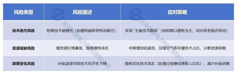 实例:某地区锂资源匮乏,在制定线路图时,短期(1-3 年)适度布局锂电(依托现有供应链),中期(3-5 年)重点发展钒液流(本地有钒矿),长期(5-10 年)探索压缩空气储能(无稀缺资源依赖),形成 “过渡 - 替代 - 多元” 的资源适配路线。