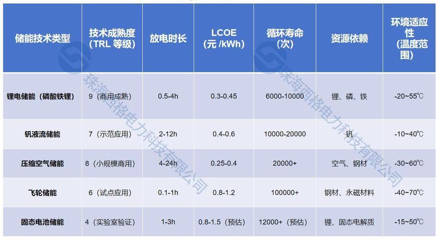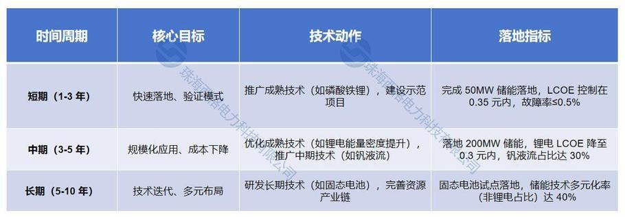 短期落地(1-3 年):选择 TRL≥8、LCOE 符合需求的技术(如磷酸铁锂、压缩空气);