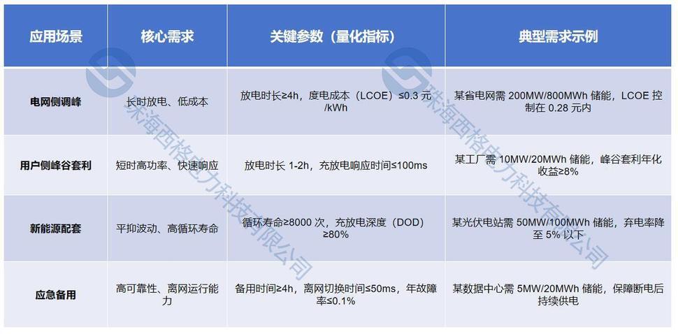 不同应用场景的储能需求差异显著,需先分类梳理关键参数: