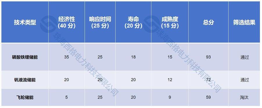 筛选结果:某用户侧场景打分结果如下,最终筛选出 “磷酸铁锂储能” 作为候选技术:
