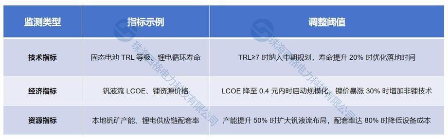 建立 “技术 - 经济 - 资源” 三类监测指标,当指标触发阈值时启动调整: