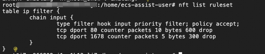 通过查看 nftable 规则设置,发现了 nft 中确实有对 1678 端口的 drop 规则。