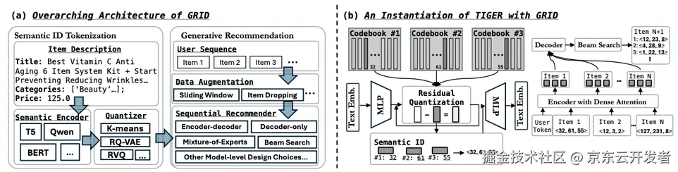 •变化 3:Semantic ID 生成阶段,利用 miniCPM-V-8B 模型联合建模 item 文本与图像信息,采用 RQ-Kmeans 量化算法。