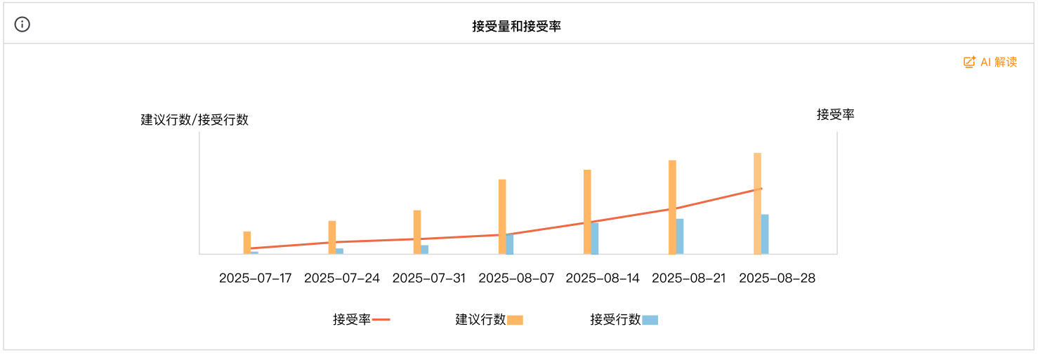 追踪 AI 代码接受量的时间曲线,观察团队对 AI 的信任度演变