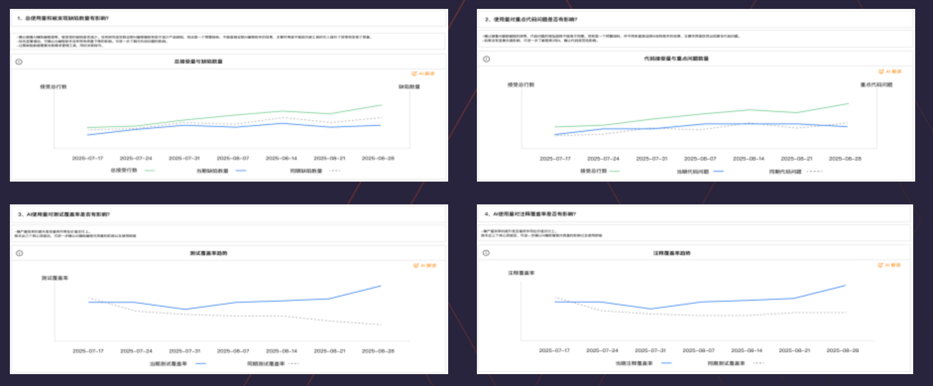 增强提效可信度:借助历史数据验证提效的真实性,进一步增强提效与 AI 的关联性和可信度。