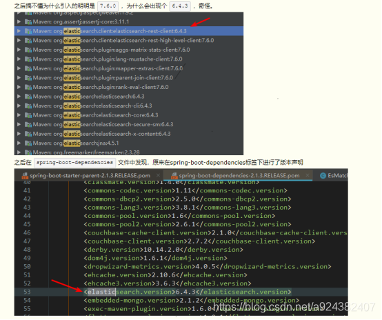 解决方案:修改父 pom 的 ES 的版本即可启动成功