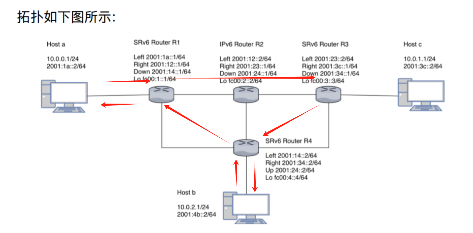 ip netns exec r4 ip addr add fc00:4::4/64 dev lo