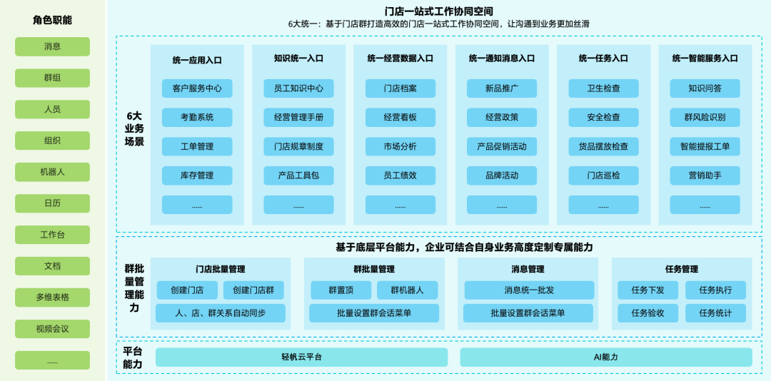 轻帆云智能IT服务管理平台(itsm)打造总部与门店高效联动的集中式服务中枢,构建一站式数字智能工作台,通过“应用、知识、数据、消息、任务、智能服务”六大统一入口,打通双向沟通与自主经营通道,让分散的工具、流程与数据真正协同,支撑业务持续增长。