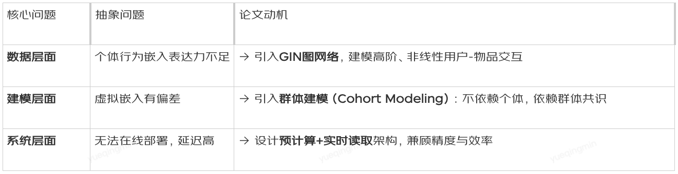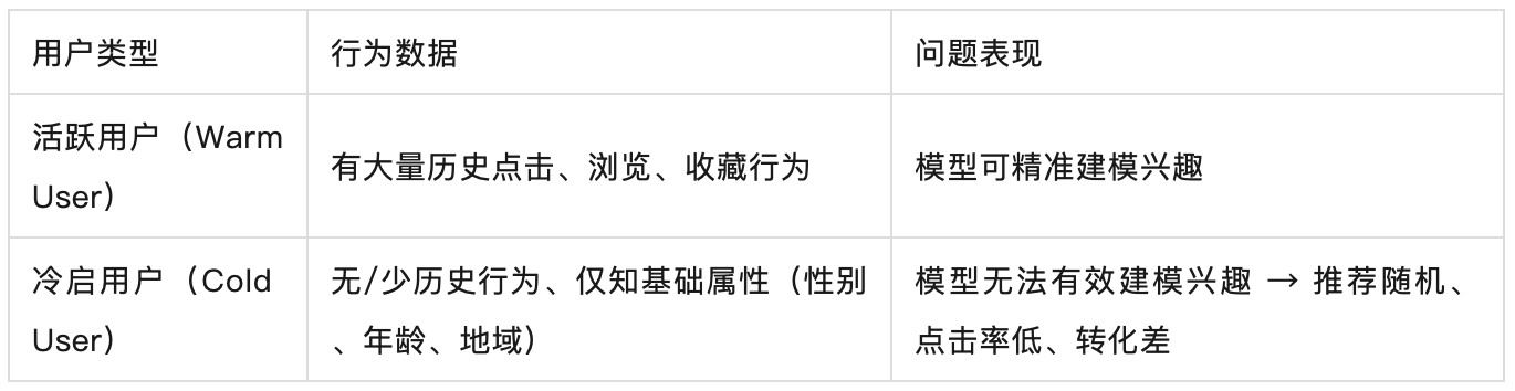 关键痛点: “没有行为,就没有兴趣” —— 但用户不能等行为积累后才被推荐。