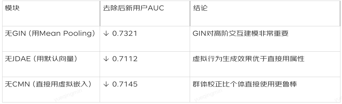 模型评估偏差:传统模型在“全体用户”上 AUC 表现良好,但在“新用户”子集上显著下降。