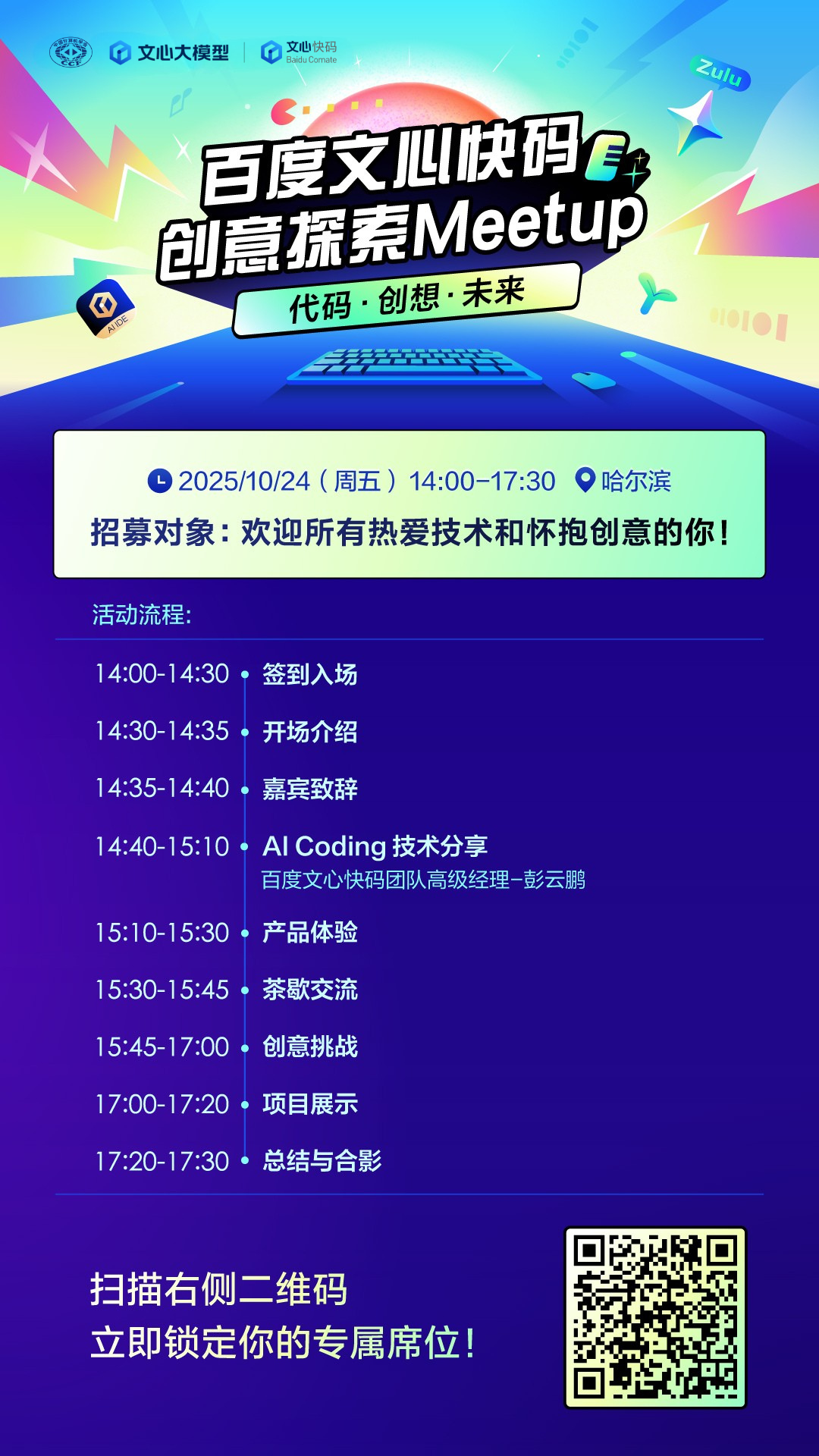 期待和你一起,在 Comate Meetup 现场,用 AI 赋能无限创造!10 月 24 日,哈尔滨见