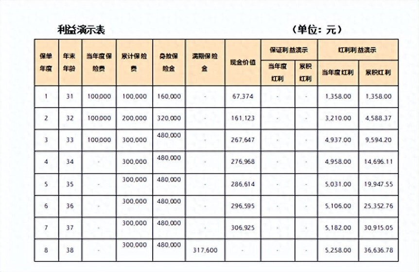 2. 以上利益演示中累积红利是各年度末的当年度红利按精算假设以年复利的方式累积得出,仅供参考,实际的红利累积利率以我们当时公布的利率为准。
