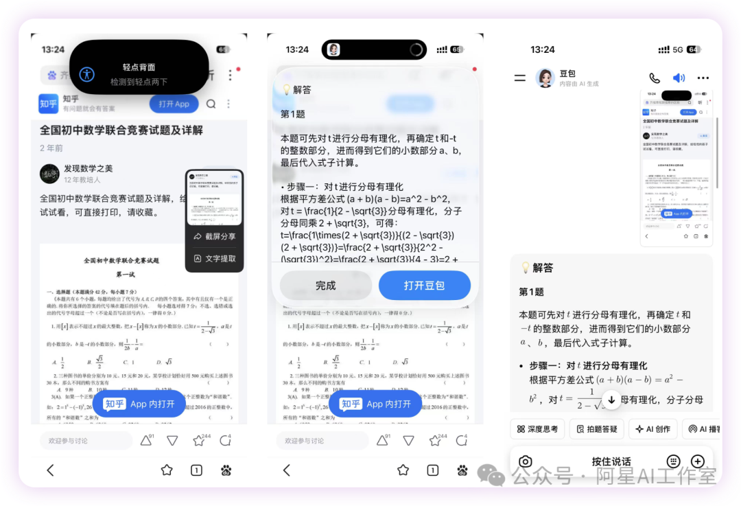 手机背面敲两下,直接召唤豆包截屏答疑!deepseek 也适用!