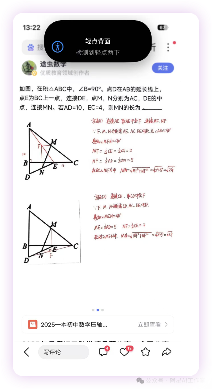 然后见证奇迹的时候到了,我们随便去网上打开一个题目,轻拍手机背后两下