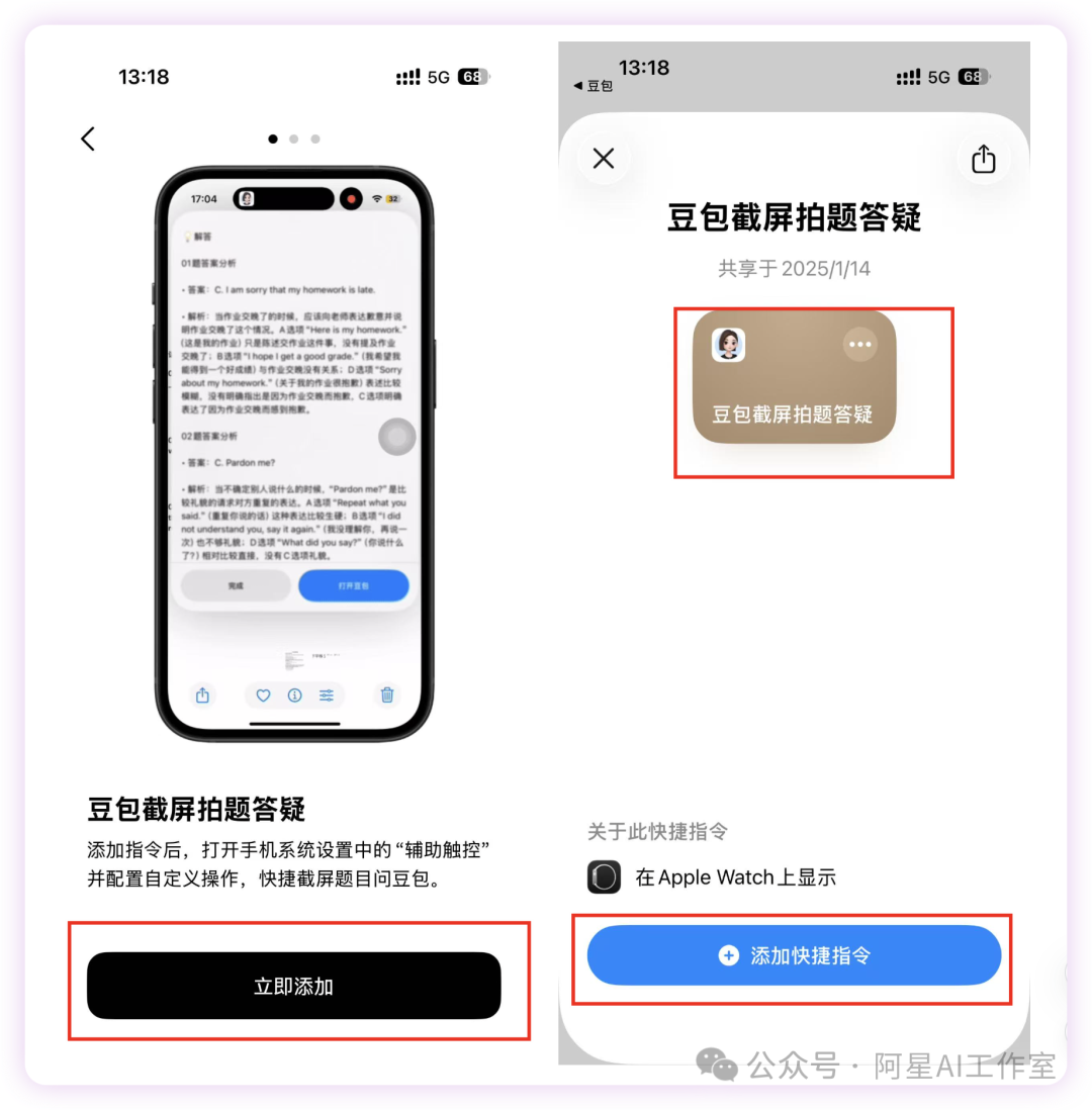 然后我就搜到一个能截屏瞬间问豆包的快捷指令