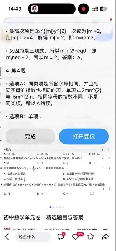 这个时候就会有一个小弹窗出来。可以看到豆包已经在回答你啦。我们选择打开豆包就可以看到对话页面啦。