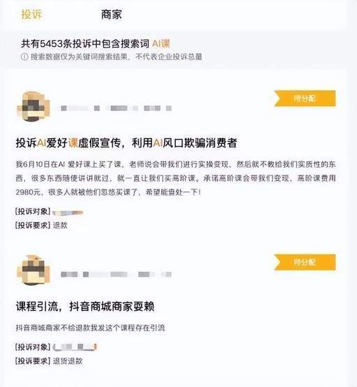 在黑猫投诉平台搜索 AI 卖课,相关结果高达 5435 条,大部分都是老年人被骗了。