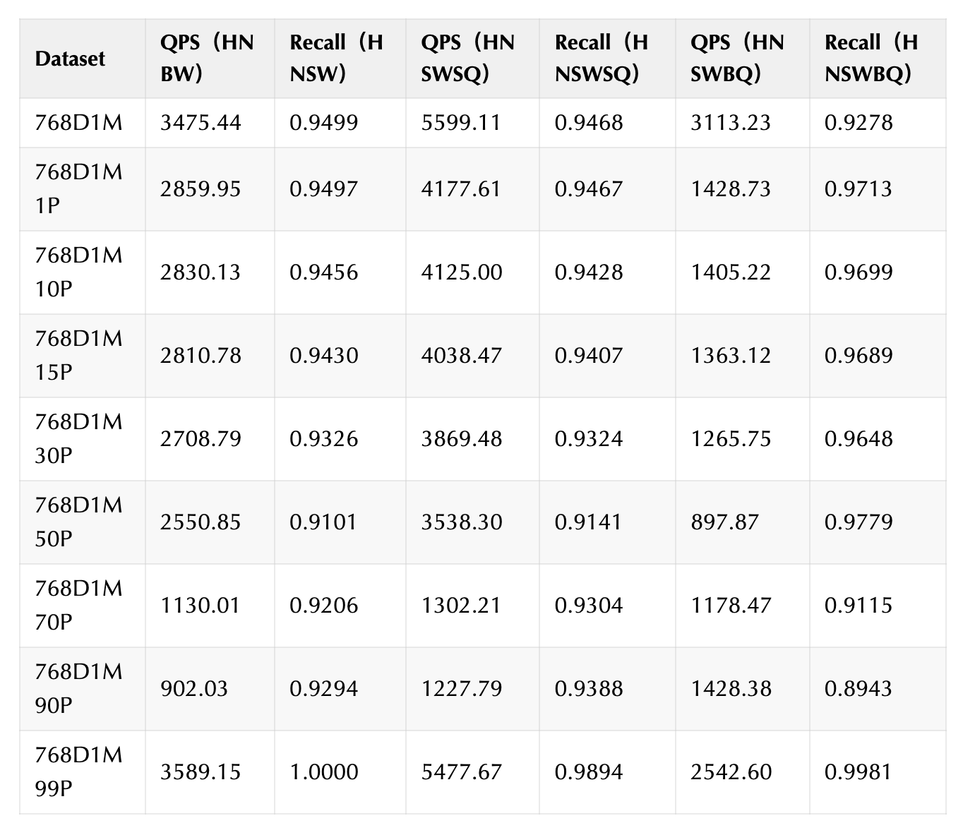 可以看到性能 HNSWSQ > HNSW > HNSWBQ