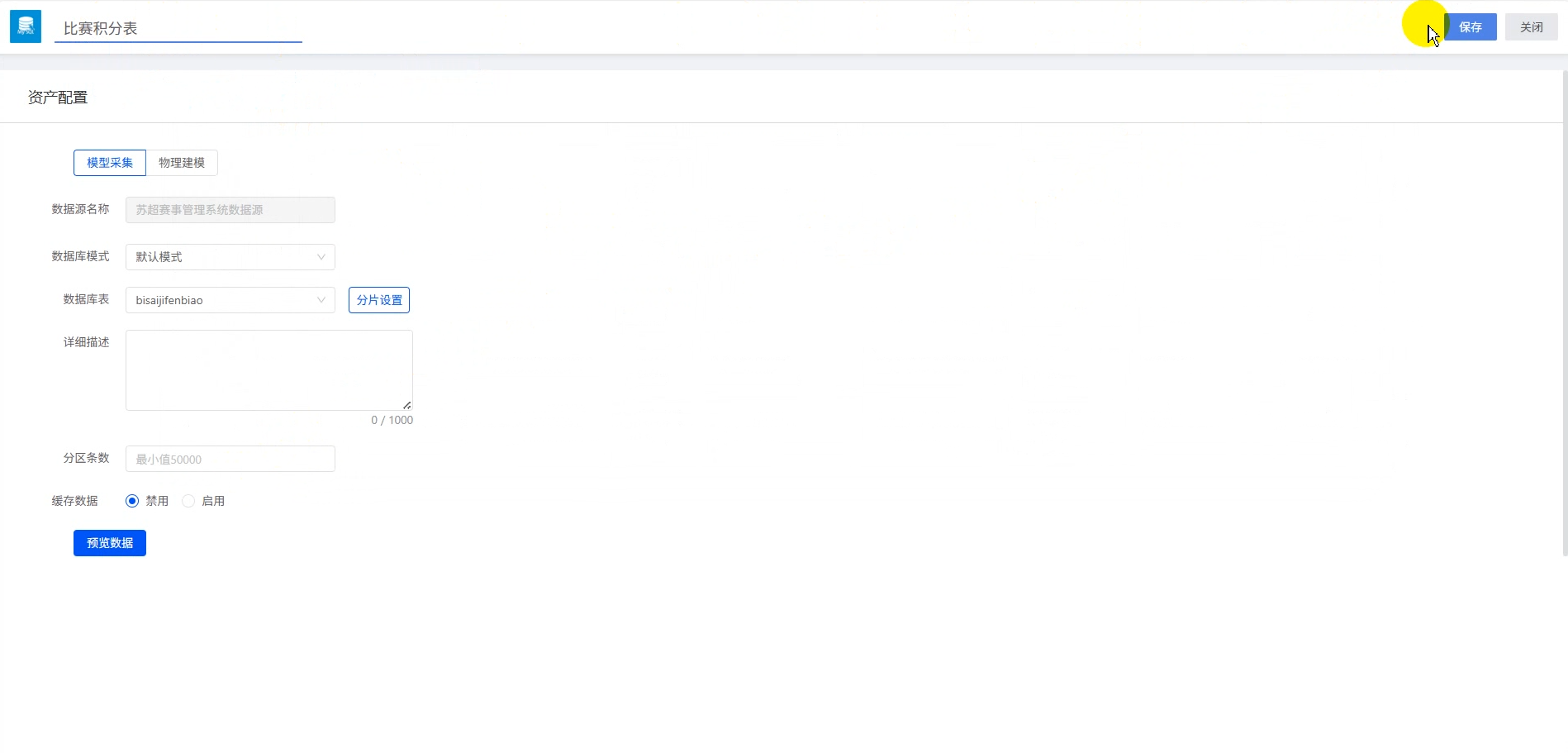 我们选择将数据库中的【比赛积分表】接入平台,形成数据资产。